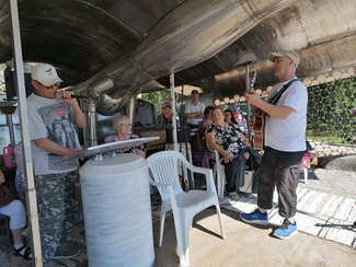 ![]() Enkelipuistossa isäntä Kyösti Iitti ja Leo Lappalainen viihdyttivät meitä |